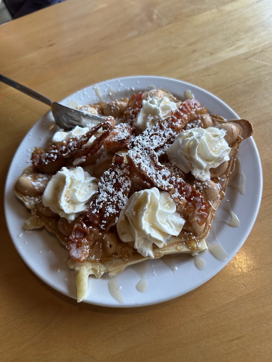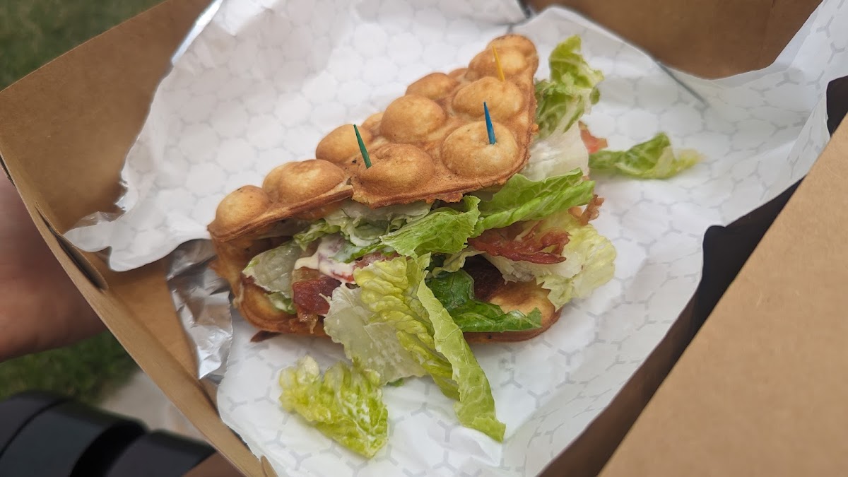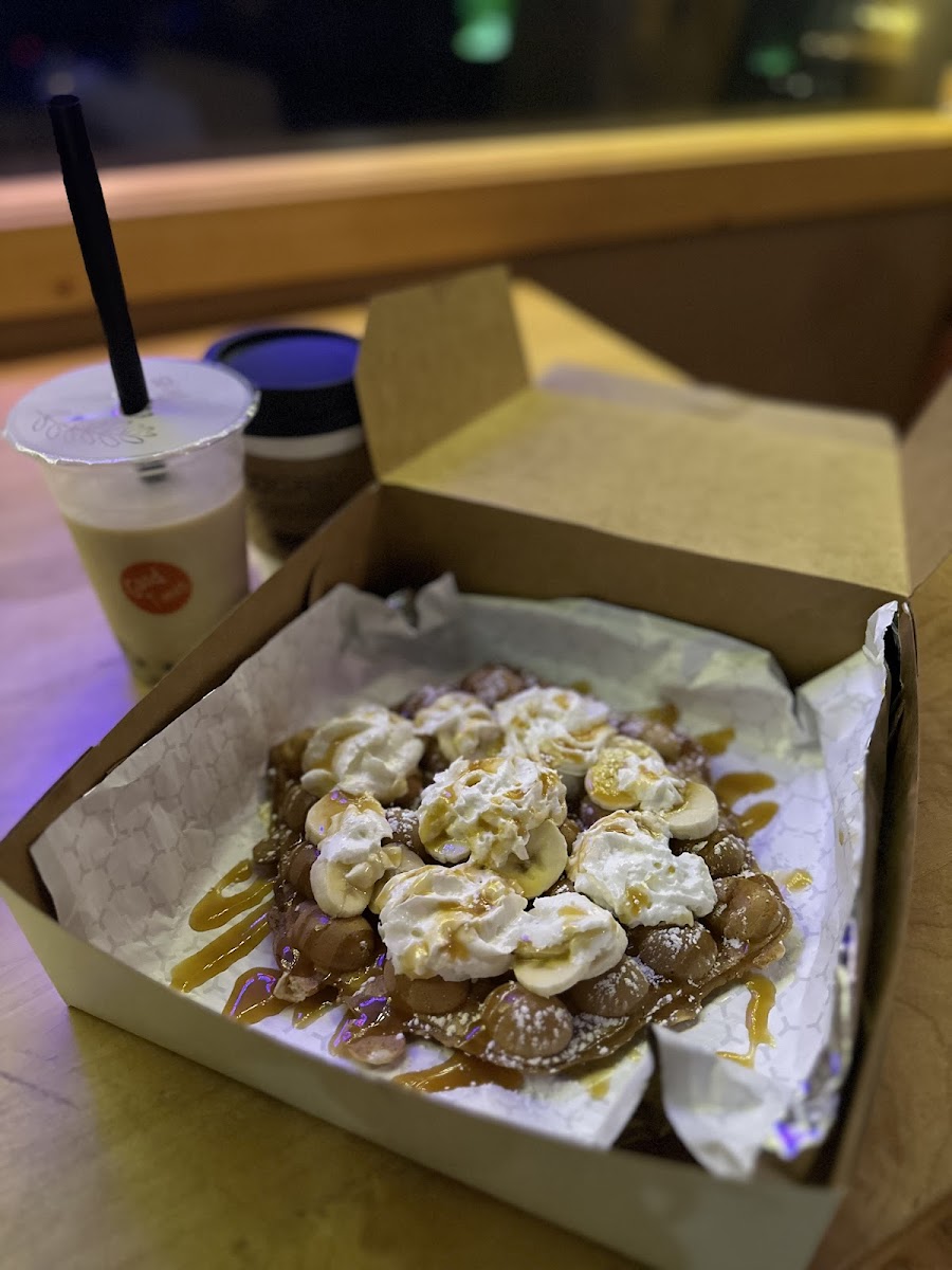 Another signature item that draws attention is the BLT Taco Bubble Waffle. It’s a creative combination that immediately sparks curiosity. The waffle itself has that classic bubble texture-crispy on the outside and soft inside-while the BLT-inspired filling adds a savory twist that contrasts nicely with the lightly sweet waffle base. It’s the kind of dish that feels playful and unique, perfect for sharing or enjoying as a casual snack while sipping tea.